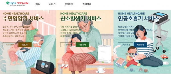 홈헬스케어 렌탈사업 선두주자인 유유테이진이 올해 신규사업인 수면무호흡증 치료 시장 진출에 발맞춰 사용자 편의성을 강화한 홈페이지(www.yuyuteijin.co.kr)를 리뉴얼 오픈했다.