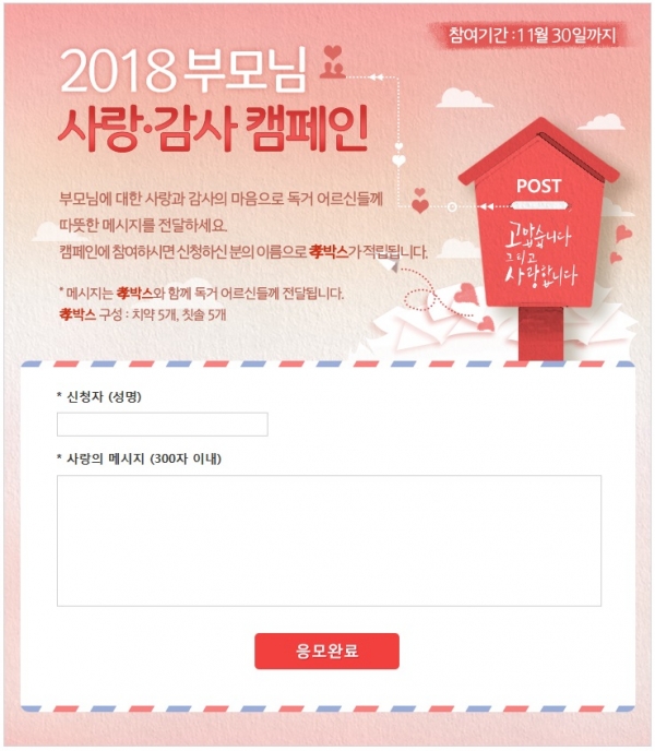 온·오프라인 캠페인 참여자 수만큼 독거노인종합지원센터 통해 '효 박스' 기부 예정