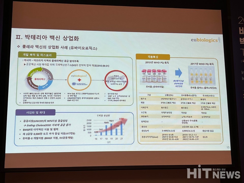 유바이오로직스는 콜레라 백신을 상업화한 경험이 있는 바이오텍이다. 백 대표는 "유바이오로직스는 WHO(세계보건기구)에 콜레라 백신을 지원하고 있다. 현재 3000만 도즈에 달하는 백신을 생산하고 있다"며 "박테리아 백신 개발을 통해 WHO PQ(사전품질인증) 획득 및 경쟁력 확보를 위해 제조원가의 혁신적 절감이 필수적이라는 것을 깨달았다"고 전했다.