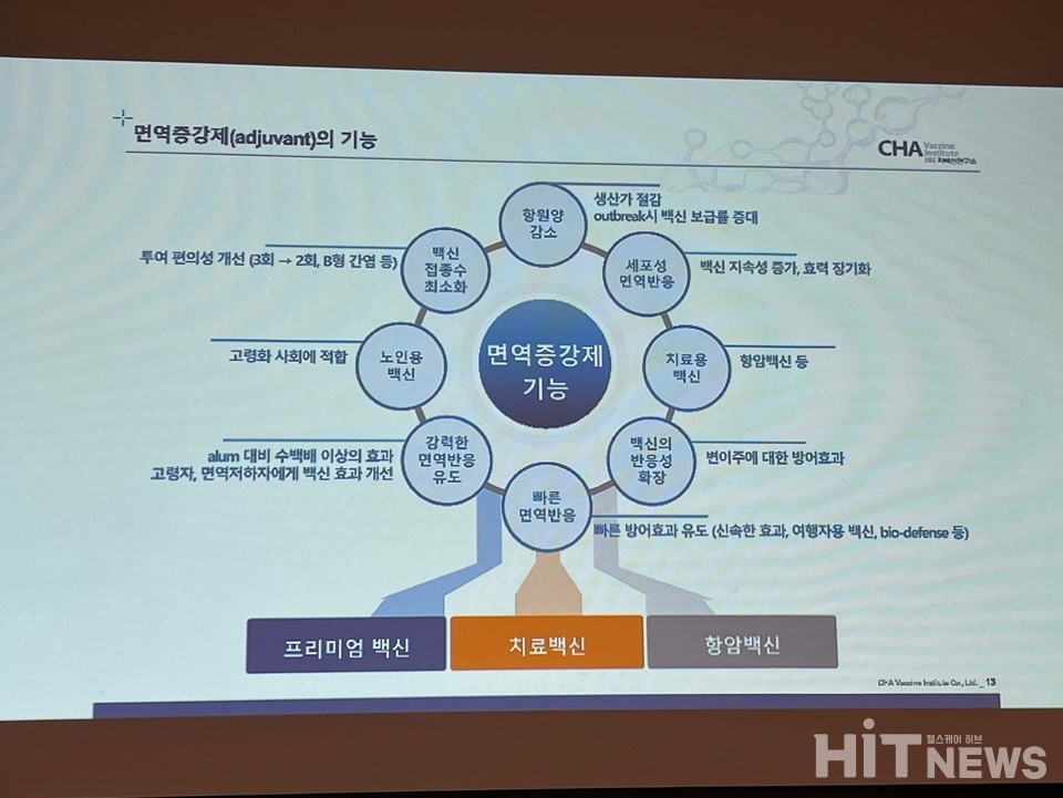 염정선 차백신연구소 대표는 "기존 백신은 면역반응은 높았지만, 안전성이 떨어졌다. 안전성 문제를 개선한 재조합 백신은 면역원성이 떨어진다"며 "차세대 백신인 면역증강제는 면역원성과 안전성 모두 높일 수 있다. 백신의 효과가 장기간 지속된다"고 밝혔다.