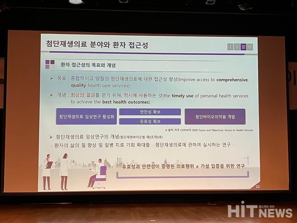 첨단재생의료 분야에 있어 환자 접근성에 대한 높은 이해도가 필요하다. 박 이사장은 "환자 접근성의 목표와 개념을 우선 이해하는 것이 중요하다"며 "첨단재생의료 임상연구를 통해 안전성과 유효성을 확보해 첨단바이오의약품 개발에 나서야 한다"고 힘주어 말했다.