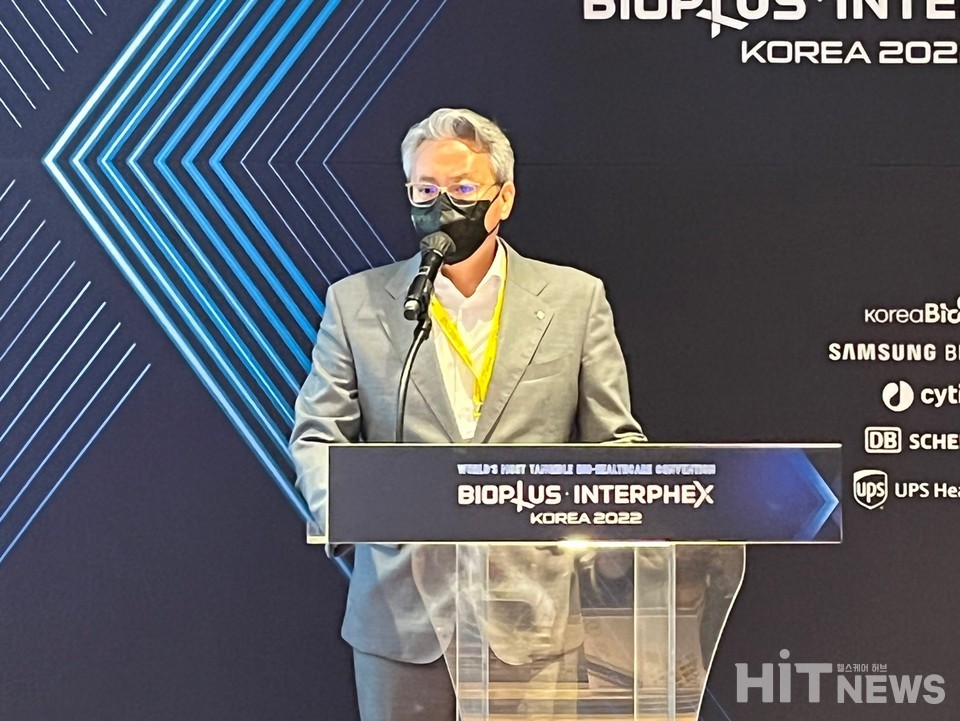 5일 바이오플러스-인터펙스코리아 2022서 우웅조 롯데헬스케어 사업본부장(상무)은 '맞춤형 헬스케어 커머스 플랫폼 구축'을 주제로 발표했다.