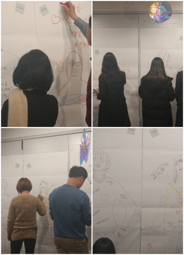 이날 진행된 사회복귀교육은 생활심리 상담가 프로그램. 암환우와 그 가족이 함께 서로의 장점을 일주일 동안 생각해 보고, 그림에 각자의 장점을 적어보는 것으로 시작됐다. 중학생 딸과 엄마, 직장인 딸과 엄마, 70대 노부부, 30대 젊은 부부가 일주일 동안 관찰한 모습을 적어 내려갔다.