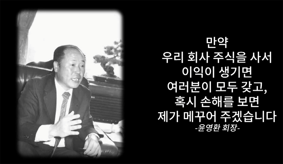 생전 임직원들을 성공시키는데 관심이 큰 나머지 '성공 공장 공장장'을 소망했던 石川 윤영환 대웅제약 명예회장은 임직원들에게 나무를 보지 말고 숲을 보라는 의미로 꽃밭과 꽃송이 이야기를 강조했다고 한다.