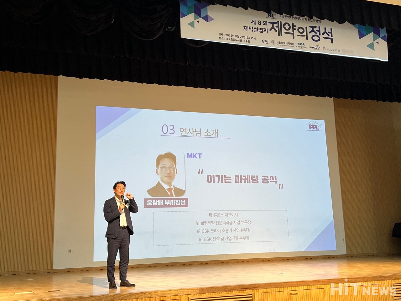 수도권 약대생 제약마케팅 전략학회 PPL(Pharmaceutical marketing Professional Leaders)은 지난 달 27일 서울마포중앙도서관에서 제8회 제약설명회를 개최하면서 한국노바티스에서 MA(Market Access, 약가업무)로 일하는 정재홍 전무, 한독 임상연구실 현복진 상무, 휴온스 대표를 초빙해 제약업계에서 그들이 보고느낀 생생한 경험담을 들었다. 전국에서 220 명의 약대생들이 모여들었다.