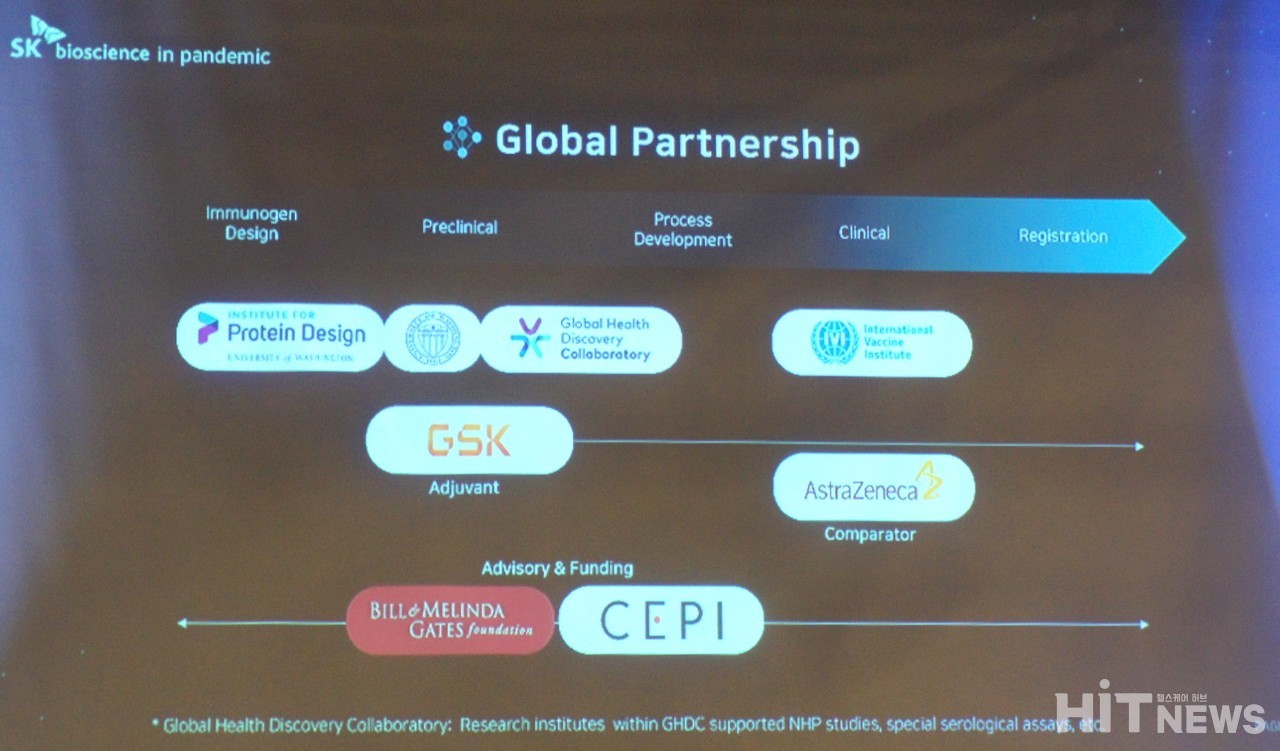 여러분들도 잘 아시다시피 백신 개발은 기초연구, 비임상, 임상, 허가 단계로 진행을 합니다. 이번 글로벌 협력은 2013년부터 지속해온 게이츠 재단과의 협업을 기반 삼아서 재단의 글로벌 엑세스 프로그램과 감염병 혁신연합 세피(CEPI)의 펀딩으로 시작했습니다.