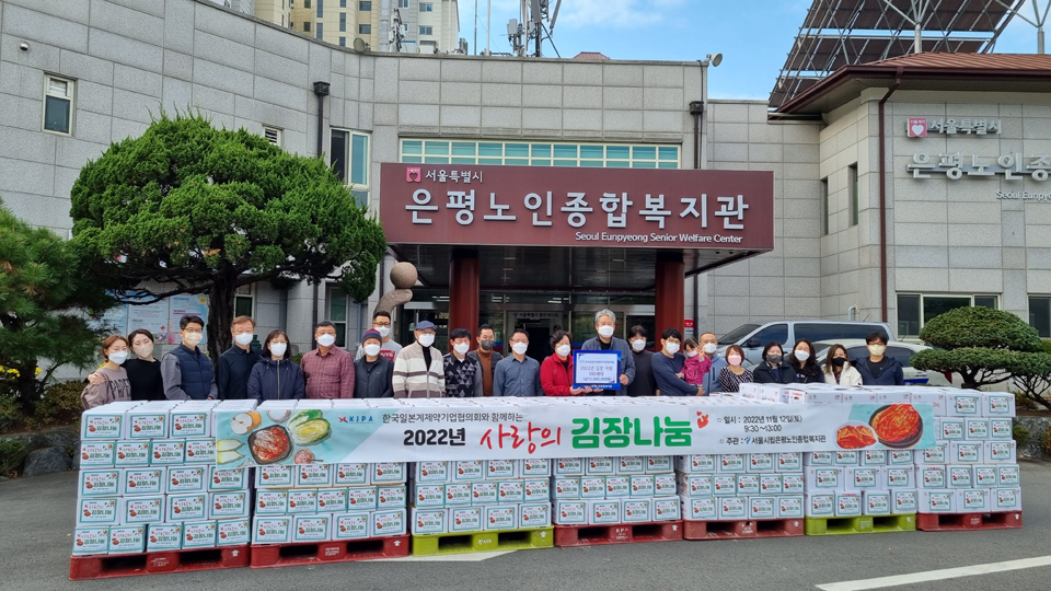 한국일본계제약기업협의회(회장 이한웅, KJPA)는 취약계층 어르신들의 따뜻한 동절기를 위해 '사랑의 김장 나눔' 봉사활동을 12일 서울시립은평종합노인복지관(관장 김승자)에서 진행했다. 이날 담근 김장 김치는 은평구 내 취약계층 600세대에 전달될 예정이다.