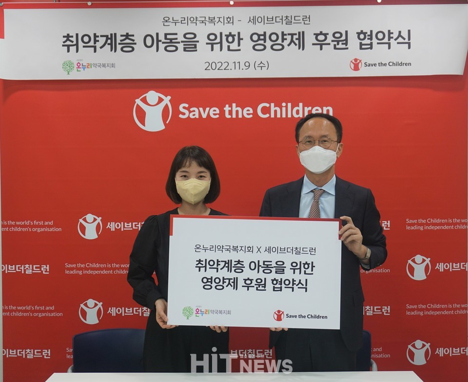 사단법인 온누리약국복지회(회장 박종화)와 국제아동권리NGO 세이브더칠드런이 취약계층 아동을 위한 영양제 후원 협약을 체결했다고 15일 밝혔다.