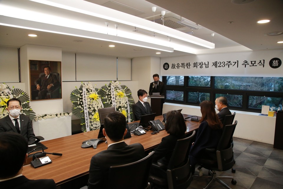 추모식에는 제천 공장과 광교 중앙연구소 및 전국 영업지점을 화상회의 시스템으로 연결한 가운데 회사가 81년 장수기업으로 성장할 수 있도록 초석을 다진 고인의 길을 되새겼다.