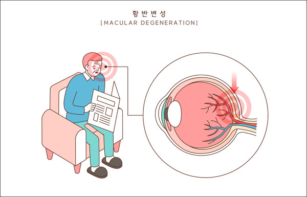 황반변성은 망막 중심부에 있는 황반에 문제가 생기는 퇴행성 눈 질환이다.