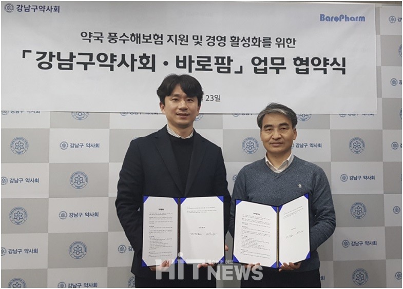 바로팜(대표 김슬기)이 강남구약사회(회장 이병도)와 23일 약국 풍수해보험 지원 및 약국 경영 활성화를 위한 업무협약을 체결했다.
