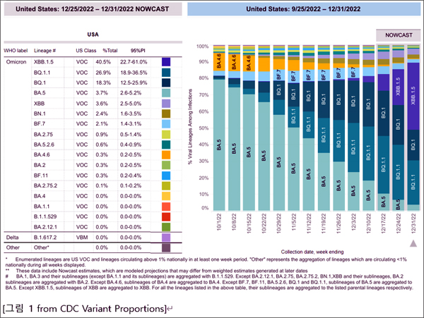 그러기에 대한민국을 지배하는 날이 빠르게 다가오고 있다. 미국에서 벌써 유입이 되었을 수도 있다. 다행히도 미국 CDD 변이 데이터가 2~3개월 후에 현실이 되기에 미리 미래를 예상할 수 있는 것도 다행이다. 질병청이 오미크론 'XBB 변이' 추이는 바짝 따라가 '기회의 창'을 잘 사용하여 대비하는 정책을 마련하면 좋겠다.