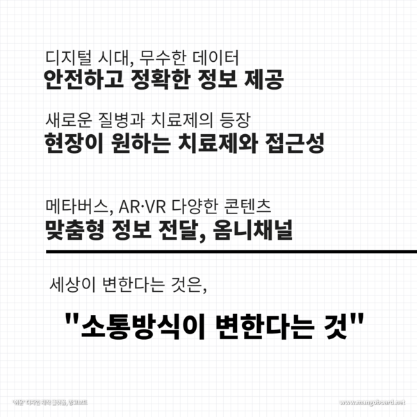 이 처럼 새로운 정보들과 치료제의 등장이 보다 신뢰있고 안전한 치료기술 제공을 요구하고 있으며, 헬스케어 관계자들은 보다 확고한 신뢰로 맺어진 파트너와 소통을 원한다.