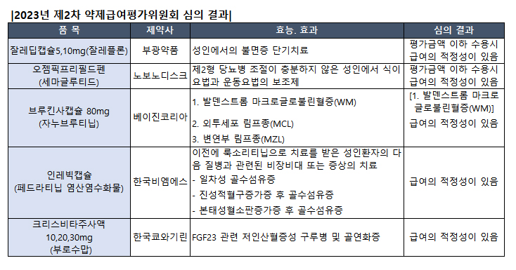 부광약품 잘레딥캡슐과 노보 노디스크 오젬픽프리필드펜은 평가금액 이하 수용 시 급여적정성이 있는 것으로 결론이 났다.