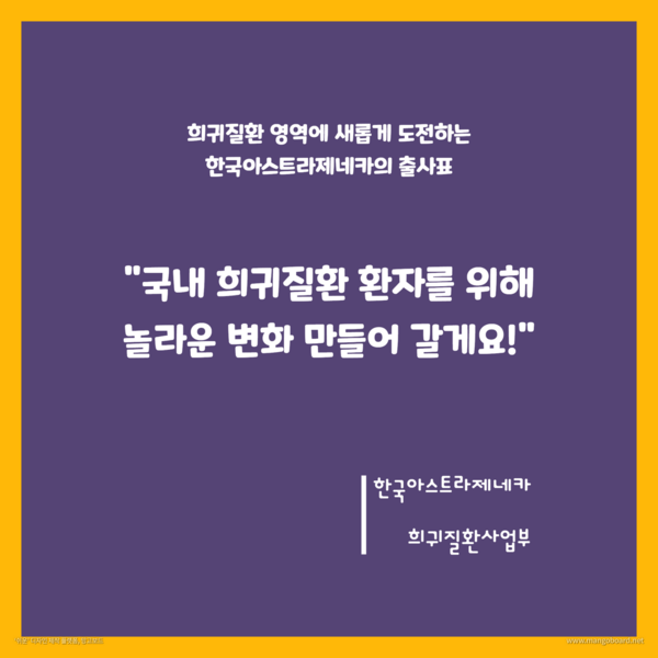 한국아스트라제네카가 지난 2월 1일부로 희귀질환 사업부를 론칭하며 국내 희귀질환 치료제 분야에 본격 진출을 선언했습니다.