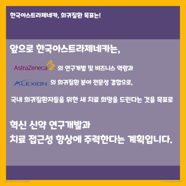 희귀질환사업부 김철웅 전무는 "아스트라제네카가 그동안 쌓아온 연구 개발 및 비즈니스 역량에 알렉시온의 희귀질환 분야 전문성이 결합된 만큼, 국내 희귀질환자들을 위해 새로운 치료 희망을 드릴 수 있을 것으로 기대한다"며 "혁신 신약 연구 개발부터 및 치료 접근성 향상까지 팀의 역량을 집중할 것"이라고 포부를 전했습니다.