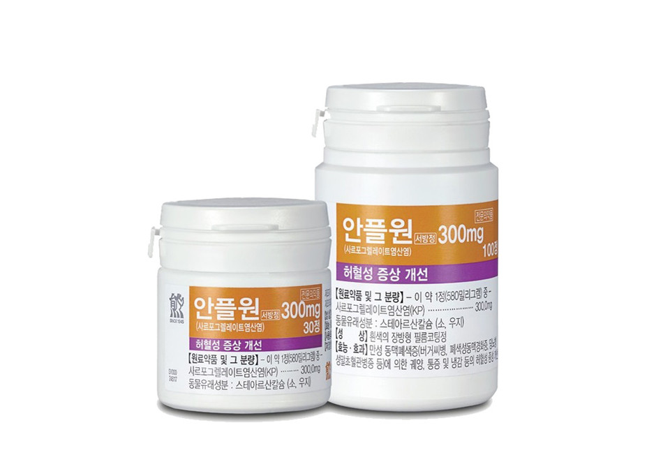 28일 회사 측에 따르면 안플원은 2015년 대웅제약이 출시한 사르포그렐레이트 성분의 항혈소판제다. 사르포그렐레이트는 선택적 세로토닌(5-HT2A) 수용체 길항제로 혈소판과 혈관에 작용해 혈관 폐색을 억제하여 만성 동맥폐쇄증에 의한 궤양, 통증 및 냉감 등의 허혈성 증상 개선 효과를 나타낸다.