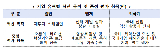이에 일반·벤처·외국계 등으로 인증유형을 구분해 유형에 따른 평가기준 차별화, 기업유형별 지원 방안을 마련한다. 연구개발 투자 촉진을 위해 혁신형 제약기업 요건 중 의약품 연구 개발비 비율‘을 2~3%p 상향하는 등 인증요건 개편도 병행한다.