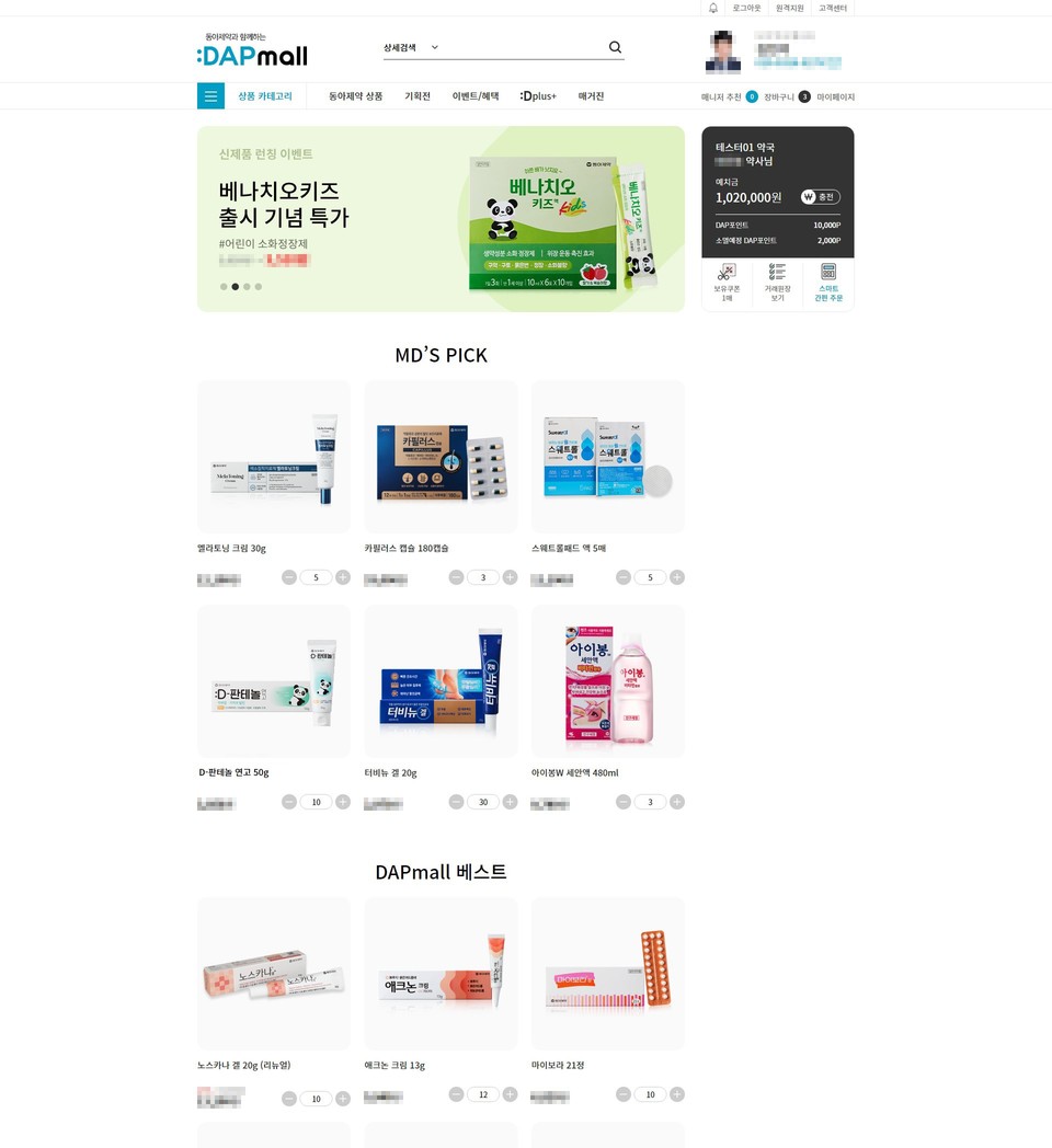 약사의 수요를 반영해 약국 공간 내 효율적인 운영을 위한 동아제약 상품 관련 진열대 문의, 자주 주문한 상품을 빠르게 주문할 수 있는 스마트 간편 주문, 예치금 및 DAP 포인트, 쿠폰 등을 한눈에 확인할 수 있는 'My DAPmall Zone'을 구성해 편의성도 높였다는 게 회사 측 설명이다.
