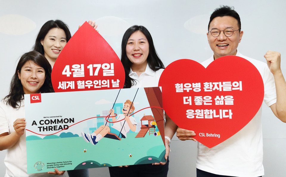 CSL베링코리아(대표 김기운)는 글로벌 캠페인인 'We're connected by A COMMON THREAD'의 일환으로 사내 캠페인을 진행했다. 혈우병 치료 혁신 및 개선된 관리 솔루션에 대한 의료진과 환자들의 높은 관심 및 마음이 공동의 목표를 향한 실(A COMMON THREAD)로 연결돼 있다는 점을 강조하는 캠페인이다.