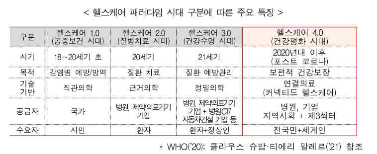 정부가 보건의료기술 수준을 선도국 대비 80% 이상으로 향상시키는 등 국민이 건강한 '헬스케어 4.0 시대'를 구현하겠다고 나섰다. 이를 위해 △심뇌‧응급 등 필수의료 투자 △암‧치매 등 미극복 질환 대응 기술 개발 △데이터‧인공지능(AI) 기반 디지털 헬스케어 혁신 △의약품‧의료기기 글로벌 경쟁력 강화 △첨단재생의료 환자 접근성 개선 등을 추진할 계획이다.