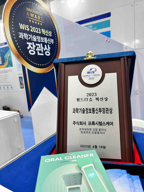이번 수상 제품은 '트로마츠 오랄클리너'는 미세전류로 백태(미생물막)을 제거하는 혀 클리너로, 프록시헬스케어는 미세전류를 이용한 특수한 전자기 파동(트로마츠 기술)을 활용해 치태, 백태 등 바이오필름을 제거하는 원천기술을 보유하고 있다.