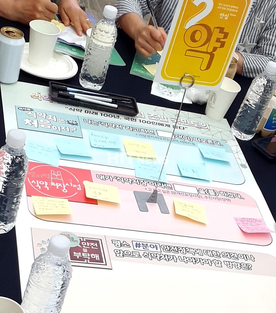 이날 100인의 국민대표단은 10개 조로 나눠 '나는 식약처라고 하면 ○○○가 떠오른다', '내가 식약처장이라면 ○○○를 하겠다', '평소 ○○○ 분야 안전 정책에 대한 의견이나 앞으로 식약처가 나아가야할 방향은?'을 주제로 토론을 진행했다.