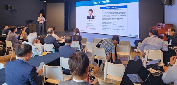 Arkgen Bioscions 전재진 이사는 'Upstream process development and characterzation for pandemic situation(펜데믹 상황에서 업스트림 프로세스 개발 및 특성화)'를 주제로 펜데믹 기간 동안 글로벌 기업들이 수행했던 업스트림 프로세스의 빠른 개발전략 등을 소개했다.
