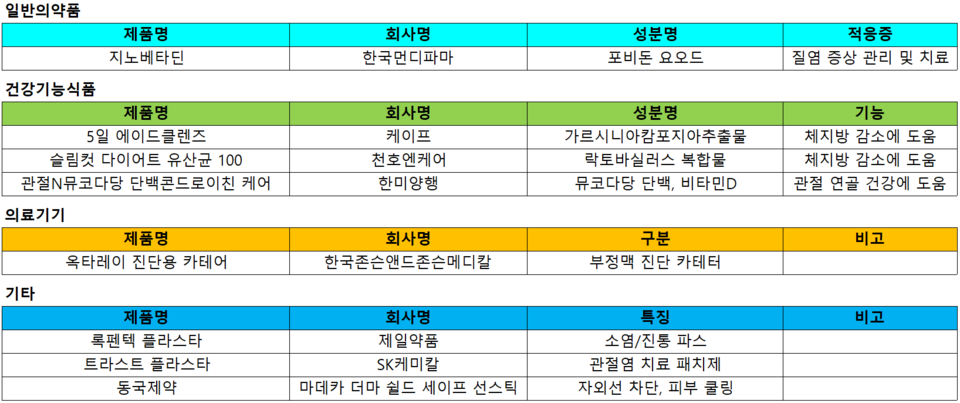 한미양행이 관절 건강 건기식 '관절N뮤코다당ㆍ단백콘드로이친케어'를 출시했다. 관절N뮤코다당ㆍ단백콘드로이친케어는 닭연골 추출 유래 뮤코다당ㆍ단백과 비타민D 복합 제품이다. 관절과 연골뼈 건강까지 한 번에 관리할 수 있다는 게 특징이다. 기능성 원료인 뮤코다당ㆍ단백은 인체적용시험을 통해 무릎관절통증지수(VAS)와 관절기능지수(WOMAC)에서 유의미한 개선 효과가 확인됐다고 회사 측은 설명했다.