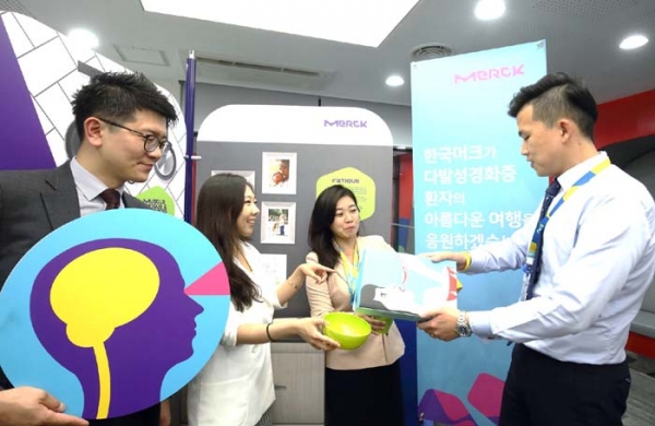 한국머크(대표이사 글렌 영)는 5월 30일 ‘세계 다발성 경화증의 날(World MS Day)’을 맞아 한국머크 바이오파마(총괄 제네럴 매니저 울로프 뮨스터) 임직원들과 함께 ‘한국머크, 인사이드 아웃(Inside Out) – 희망을 나눠요’ 캠페인을 진행했다. 매년 5월 30일인 ‘세계 다발성 경화증의 날’은 질환 인식을 높이고 다발성 경화증으로 고통받는 환자들에게 희망을 전달하기 위해 지정됐으며, 전 세계적으로 5월 한 달 간 다발성 경화증과 관련된 다양한 행사가 이루어진다.