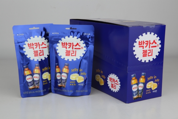 박카스맛 젤리는 카페인이 첨가되지 않아 전 연령층에서 섭취가 가능하다. 파우치형 지퍼백 포장으로 휴대가 편리하며 먹고 싶은 양만큼 섭취 후 보관이 용이하다. CU, 세븐일레븐, 미니스톱 등 전국 편의점에서 1,200원에 구입 가능하다.