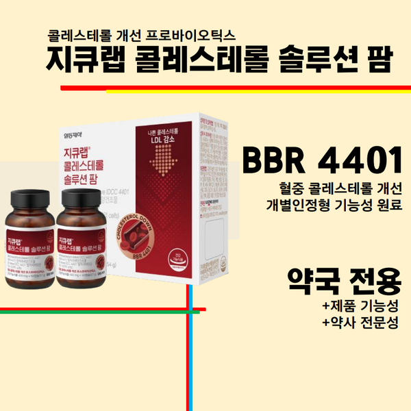 일동제약이 혈중 콜레스테롤 개선에 도움을 줄 수 있는 개별인정형 기능성 원료를 함유한 프로바이오틱스 '지큐랩 콜레스테롤 솔루션 팜'을 출시했습니다.