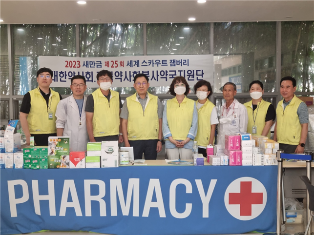 최광훈 대한약사회장은 6일 '2023 새만금 제25회 세계스카우트잼버리' 웰컴센터 내 위치한 봉사약국과 잼버리 야영장 내 의료기관을 방문해 운영 현황을 점검하고 근무하고 있는 약사회원을 격려했다.