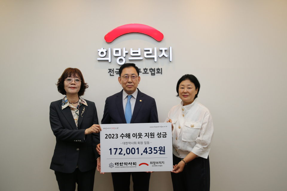 김정희 한국재해구호협회 사무총장은 "재난 현장 일선에서 활동하다 보면 의약품에 대해 조언을 얻을 수 있는 약사의 도움이 필요하다는 사실을 절실히 느낀다"며 "대한약사회에서 전달한 기부금은 자연재난으로 어려움을 겪는 이들의 마음을 조금이나마 위로하는데 사용하겠다"고 밝혔다.