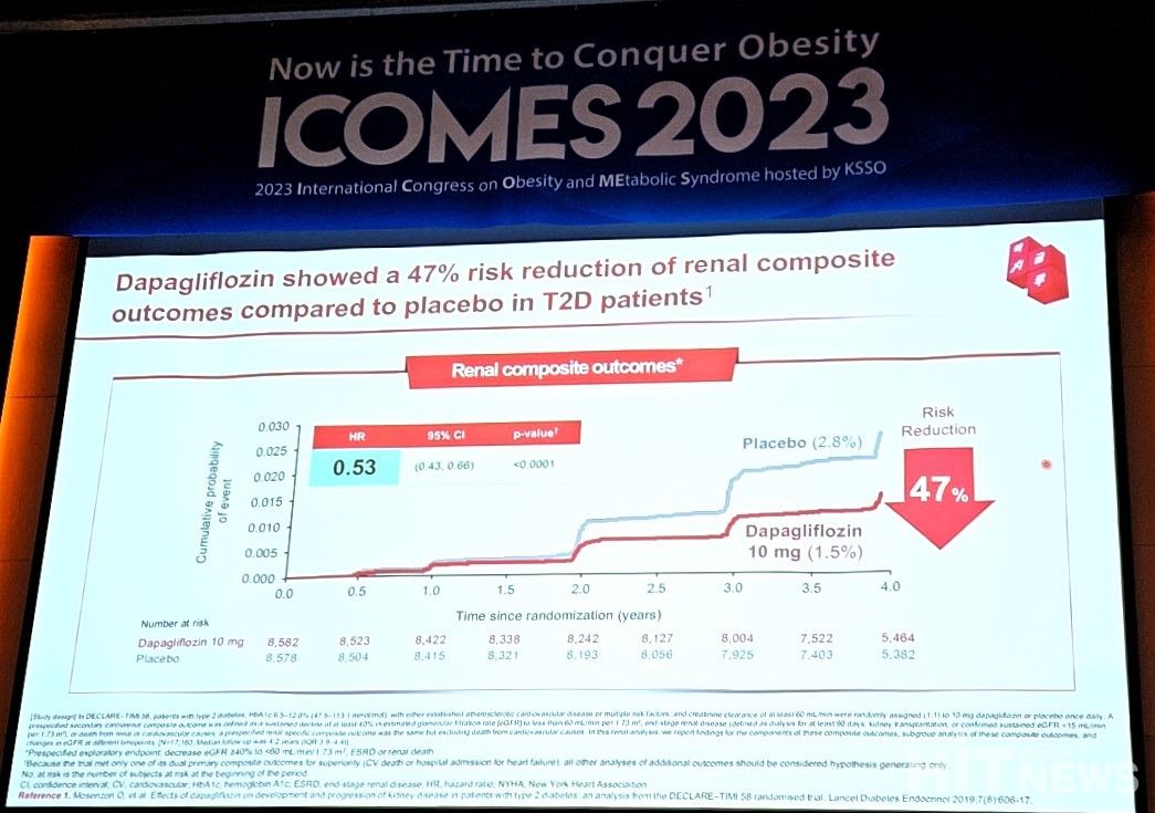 대한비만학회가 지난 7일부터 3일간 개최하는 'ICOMES(국제 비만 및 대사증후군 학회)'에서 이은영 가톨릭대 서울성모병원 내분비내과 교수는 '다파글리플로진과 시타글립틴, 메트포르민 병용요법의 심장-신장 이점(The Cardio-Renal Benefits of Dapagliflozin and (Metformin/Sitagliptin) combination therapy)'을 주제로 8일 오찬(luncheon) 세션을 진행했다.