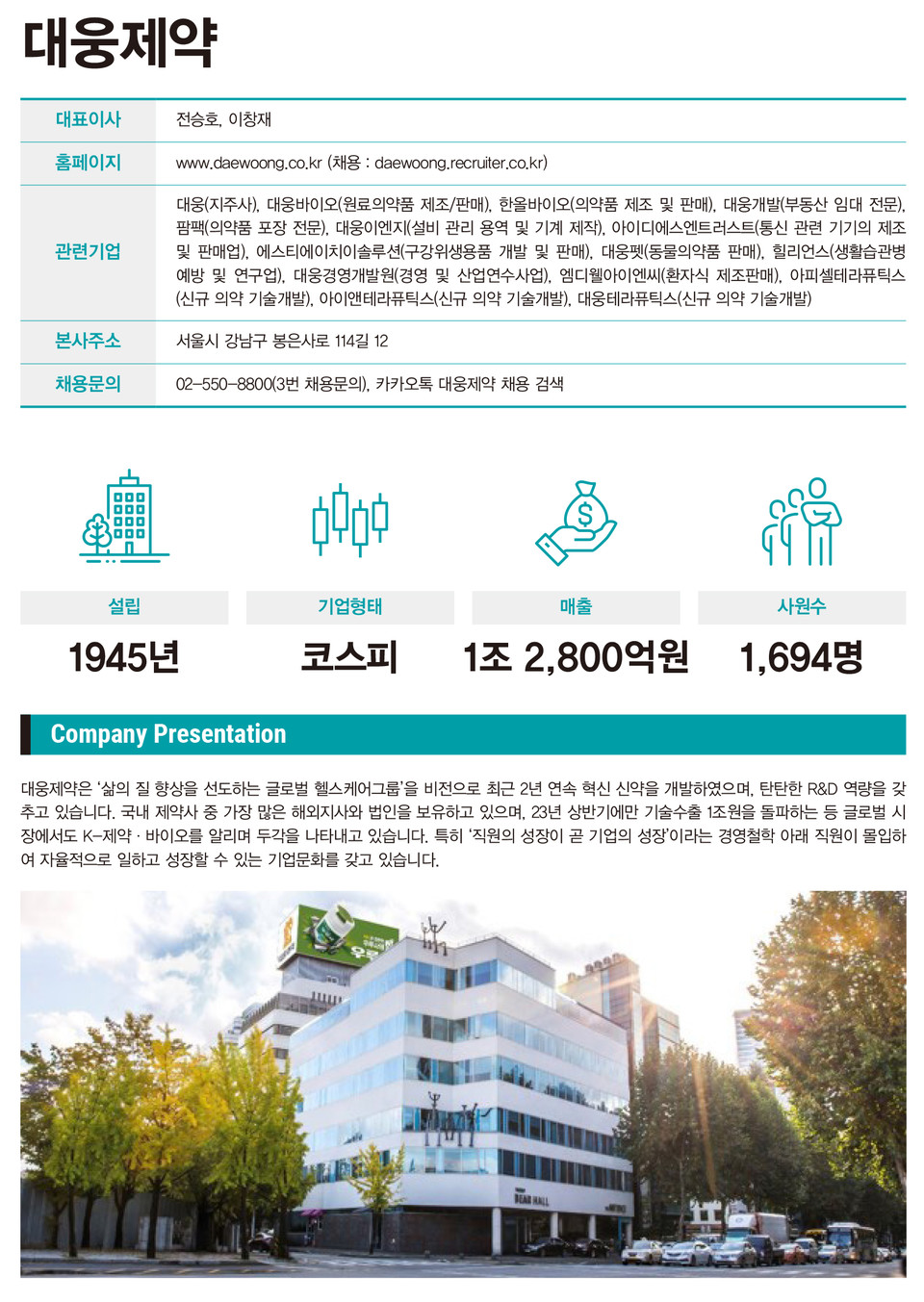[알짜 채용 정보] 대웅제약