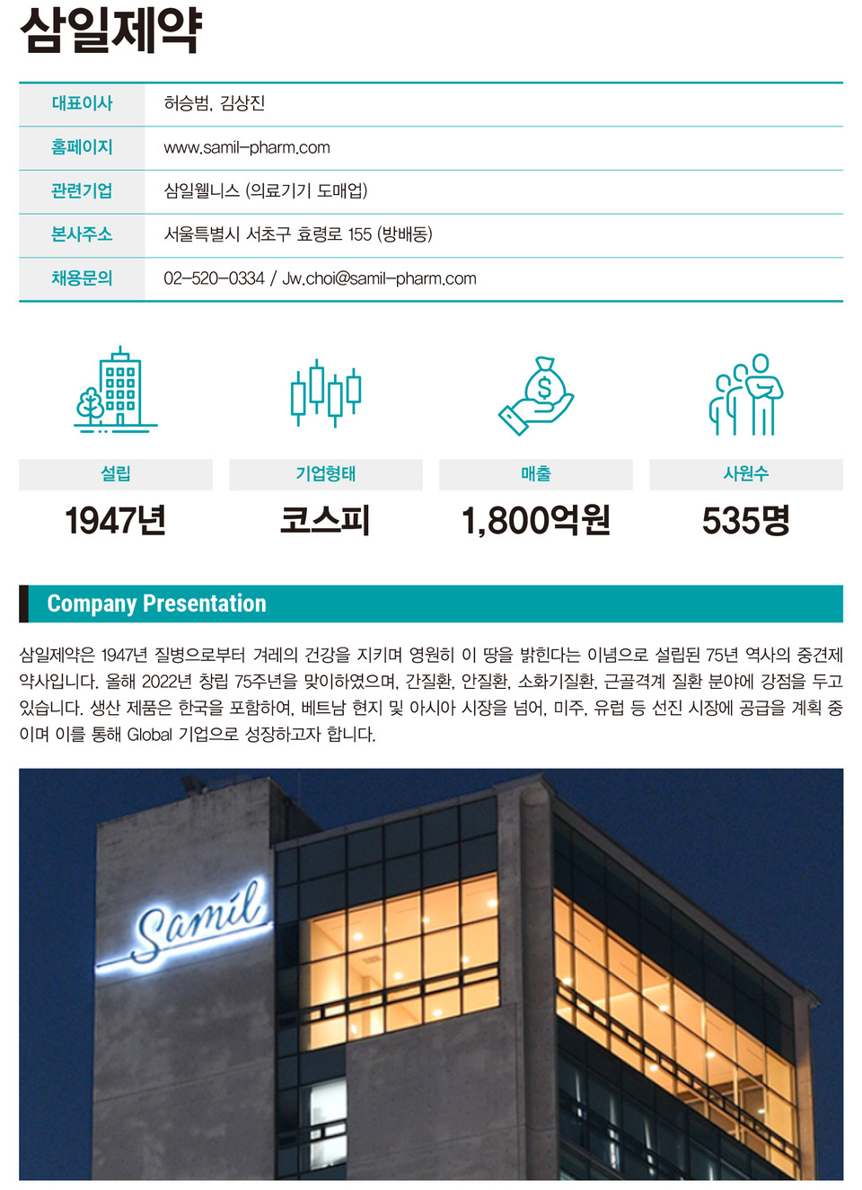'2023 한국 제약바이오 채용박람회'가 오는 9월 19일(화) 오전 10시부터 오후 6시까지 서울 양재aT센터 제1전시장에서 열린다. 히트뉴스는 제약바이오 취업준비생이라면 꼭 알아야 하는 기업별 요점정리 노트를 인포그래픽으로 제공한다. 내 일(My job)을 잡(Job)고, 내일을 꿈꾸는 취준생들 화/이/팅!!!