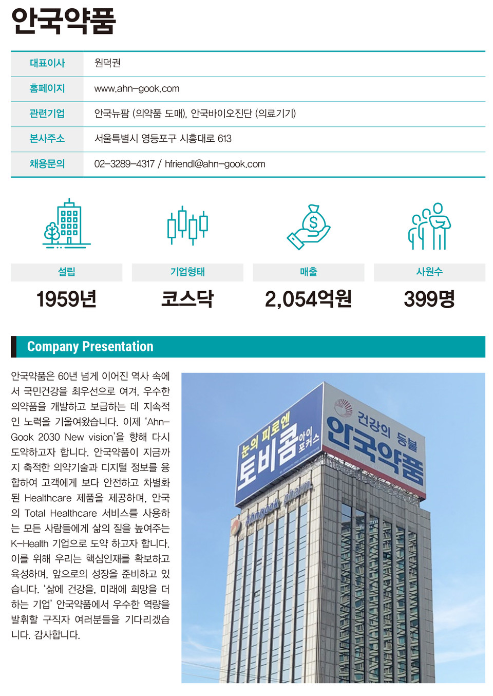 [알짜 채용 정보] 안국약품