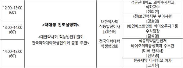 또 대학원, 대학생 등 예비 약사들을 위해 여러 직역에서 활동하고 있는 선배 약사들과의 만남도 이뤄질 예정이다. 작년에는 변리사, 변호사, 스타트업 벤처 관련 영역에서 활동한 약사들과의 진로설명회를 진행했는데, 이번에는 공직 약사 위주의 진로설명회가 진행될 예정이다.