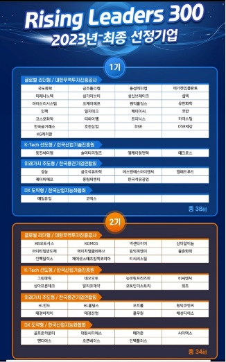 한편 라이징 리더스 300 프로그램은 향후 5년간 여신한도 4조원, 금융비용 600억원을 지원하는 중장기 사업이다. 사업 3기는 기업별 재무결산이 종료되는 내년 4월 신청을 접수할 예정이다.