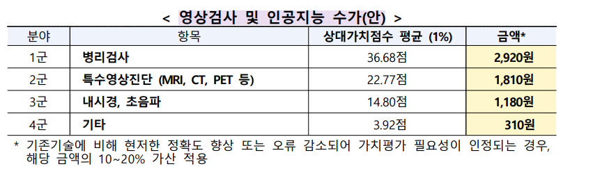 비급여로 적용하는 경우에는 분야별로 상한(인공지능이 적용되는 영상 검사 비용의 10%~30% 수준에서 군별로 적용)을 적용해 과도한 환자 부담이 이뤄지는 것을 방지한다.