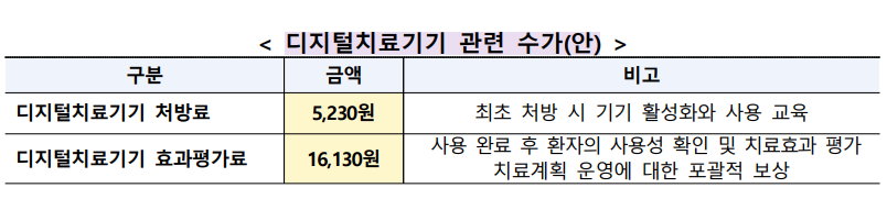 디지털치료기기는 주로 정신․만성질환 대상으로 사용이 효과적으로 관리될 필요성을 고려해 의료진에 대한 수가를 신설하기로 했다.