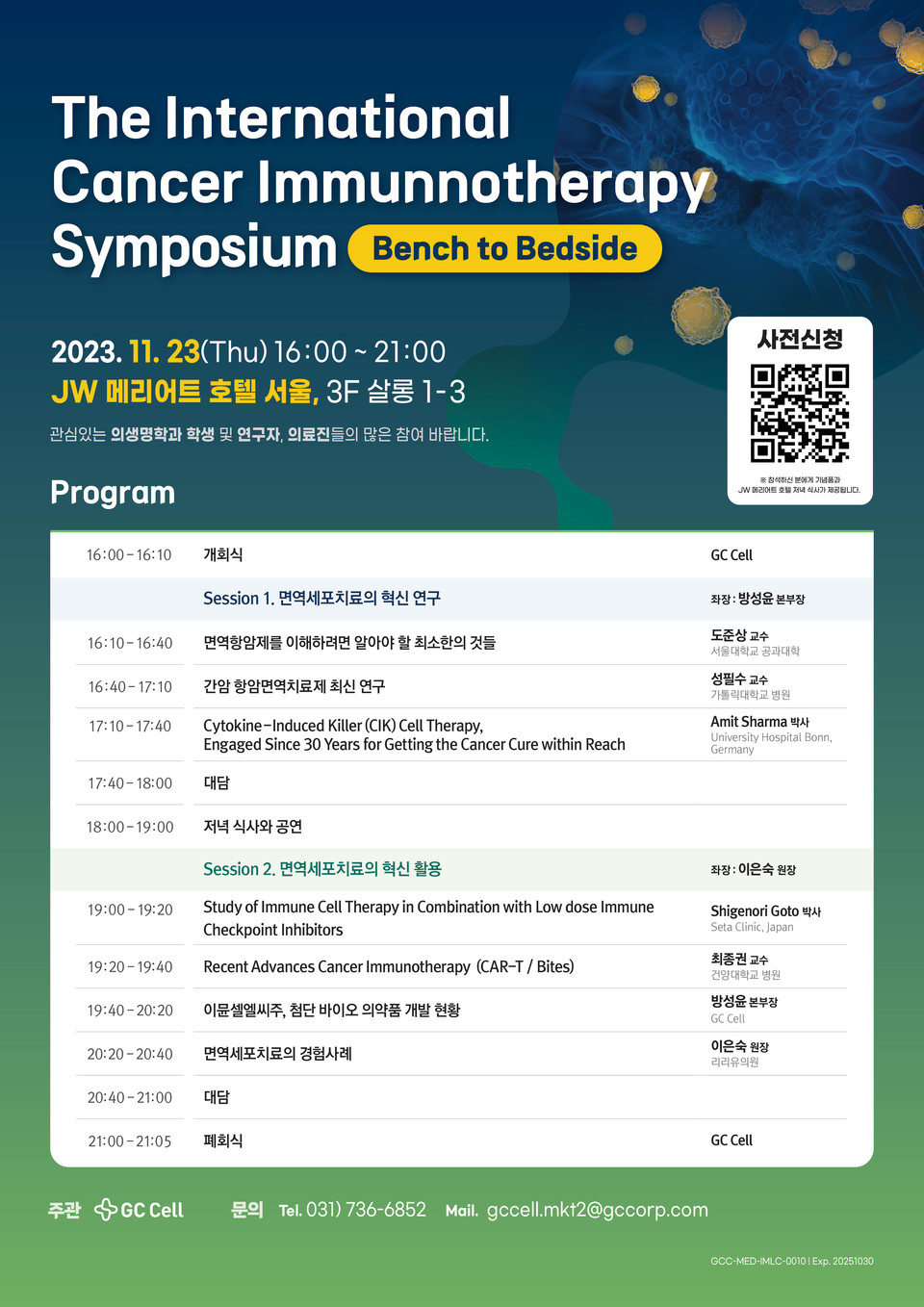- GC셀, '2023 국제 암 면역세포 치료 심포지엄' 개최