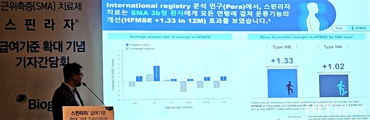 박형준 교수는 "스핀라자가 미국 식품의약국(FDA)을 포함한 다양한 국가들에서 허가돼 사용되고 있고, 급여 기준을 점차 성인으로 확대하는 것이 논의되고 있다"며 "이번 급여기준 확대도 성인에 가까운 환자들한테도 스핀라자의 사용 범위를 넓히겠다는 취지인 만큼, 성인들에게도 정말 도움이 되는지가 관건이 되고 있다"고 설명했다.