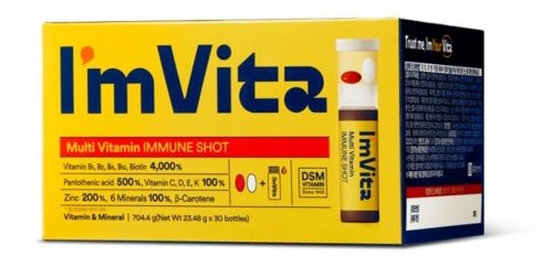 종근당의 아임비타 이뮨샷은 건기식 OEM 전문기업 네츄럴웨이가 제조하는 고함량 비타민 제품이다. 정제와 캡슐, 액상으로 구성돼 있으며 지난해 출시됐다. 차별화 포인트는 항산화 성분으로 알려진 '베타카로틴'이함유돼 있다는 점이다.