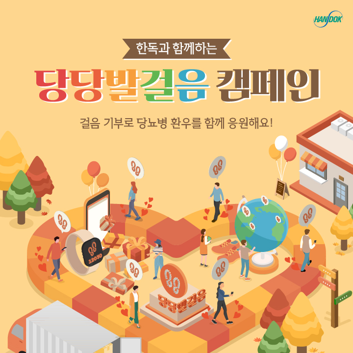 한독(대표이사 김영진, 백진기)은 14일 '세계 당뇨병의 날'을 맞아 누구나 동참해 걸음 기부를 할 수 있는 '함께 걸어요 당당발걸음' 캠페인을 진행한다고 밝혔다. 이 캠페인은 걷기로 건강도 챙기고 도움이 필요한 당뇨병 환우도 도울 수 있는 걸음 기부 방식으로 진행된다. 한독은 최근 젊은 당뇨병 환우가 급격히 증가하는 데 반해, 만성질환에 대한 관심과 치료에 대한 적극성이 낮은 상황을 고려해 누구나 쉽게 참여할 수 있도록 이번 활동을 마련했다.