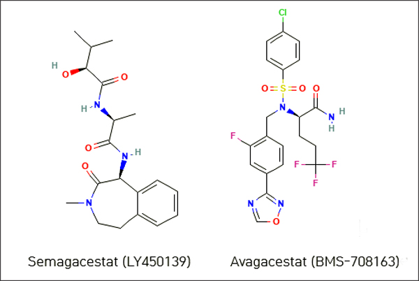 먼저 semagacestat 및 avagacestat와 같은 γ-세크레타제 억제제가 존재하였다. 하지만 연구자들이 100개 이상의 막횡단 단백질을 처리하는 프로테아제를 잘라내면 인지 기능을 방해할 수 있다는 염려때문에 이 억제제는 슬금슬금 사라졌다(2012년 12월 뉴스, 2010년 8월 뉴스).