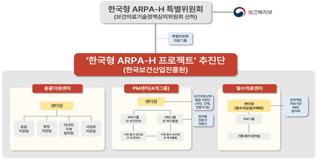한국형 ARPA-H 프로젝트는 관료제를 최소화하고 프로젝트 관리자(PM,Project Manager)를 중심으로 유연하고 신속하게 연구과제를 관리하는 것이 특징으로, 기존의 연구개발(R&D) 사업과는 달리 PM이 도전적 문제 발굴부터 사전기획, 과제 선정‧관리까지 전 주기를 전담하여 수행하게 된다.