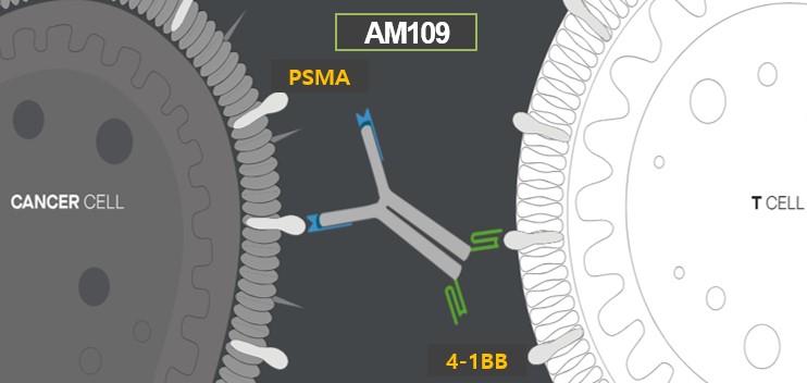 AM109 프로젝트는 이중항체 '어피맵(AffiMab)' 플랫폼 기술을 이용해 PSMA 암질환단백질과 T세포의 4-1BB를 연결하는 난치성 전립선암 특이적 면역세포 관여항체(engager) 치료제 개발을 목표로 하고 있다.