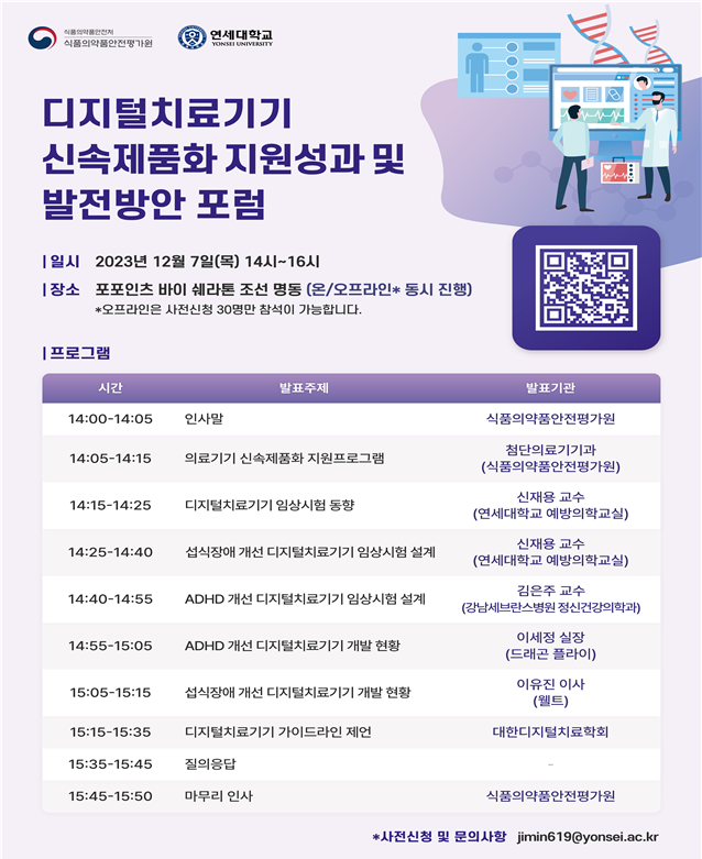 한편 이날 열리는 '디지털 치료기기 신속 제품화 지원 성과 및 발전 방안 포럼'에서는 디지털 의료기기 연구개발자, 학회 관계자를 대상으로 안내서 내용을 설명하고 △디지털 치료기기 제품화 지원 사례와 성과 △성능ㆍ안전성 평가 방법 △임상적 유효성 평가 방법 △임상시험 지원 방안 등을 논의한다.